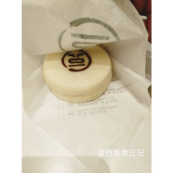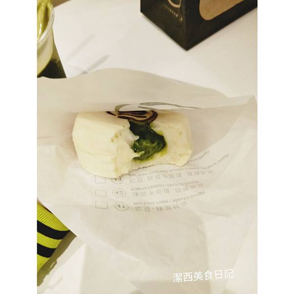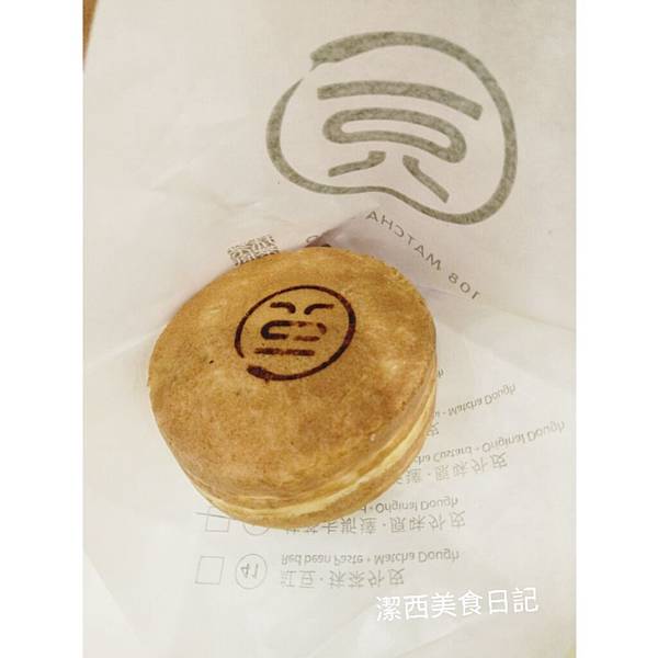 外面還有一O八的烙印,超有質感的呀~~白色的部分真的是麻糬口感(沒什麼味道)搭配抹茶卡士達(抹茶奶油),裡面甜甜的外面QQ的,值得試看看!!