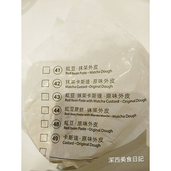 外皮有點像車輪餅~口感就類似車輪餅,不是麻糬口感的,麵皮味比較重,裡面紅豆一樣偏甜,跟抹茶內餡相比,紅豆比較甜喔,抹茶的也多了茶香味~~