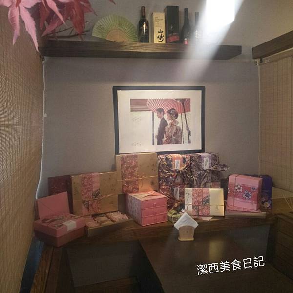 ↓↓↓↓這間本來有一組客人來試吃喜餅禮盒,後來走了才拍照,他們禮盒包裝既華麗又充滿日式的味道,送禮真的很有質感啊~~~