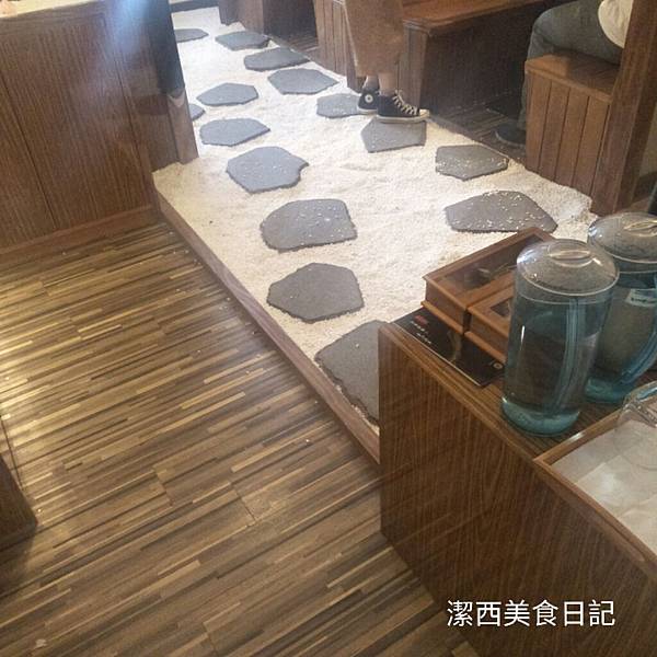 走進包廂還會先走過小石子步道,這裡超級適合拍照的啊~~~連牆壁、包廂外都有很精美的擺飾(♡´౪`♡)
