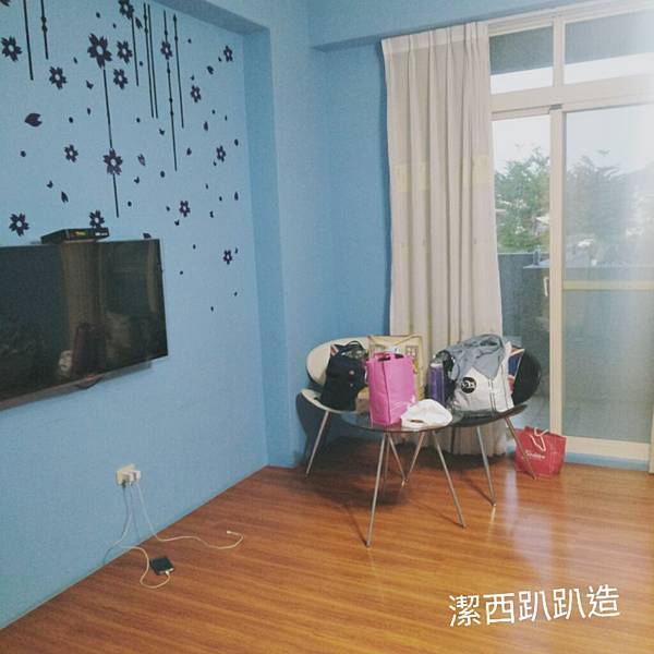床前的電視、閒聊座椅區和空地(只拍到空地的一半而已,真的很大,完全可以兩個人跳舞!!)