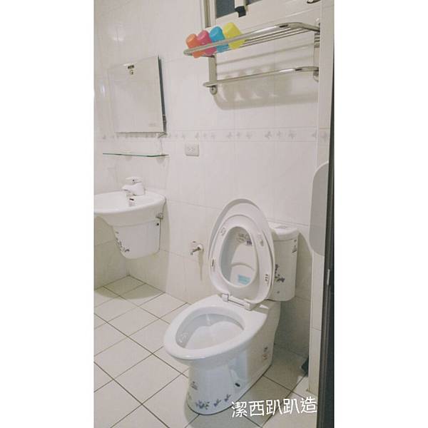 刷牙杯也有,然後還有可愛壁貼的馬桶~~重點是,他們家的廁所超乾淨!!!